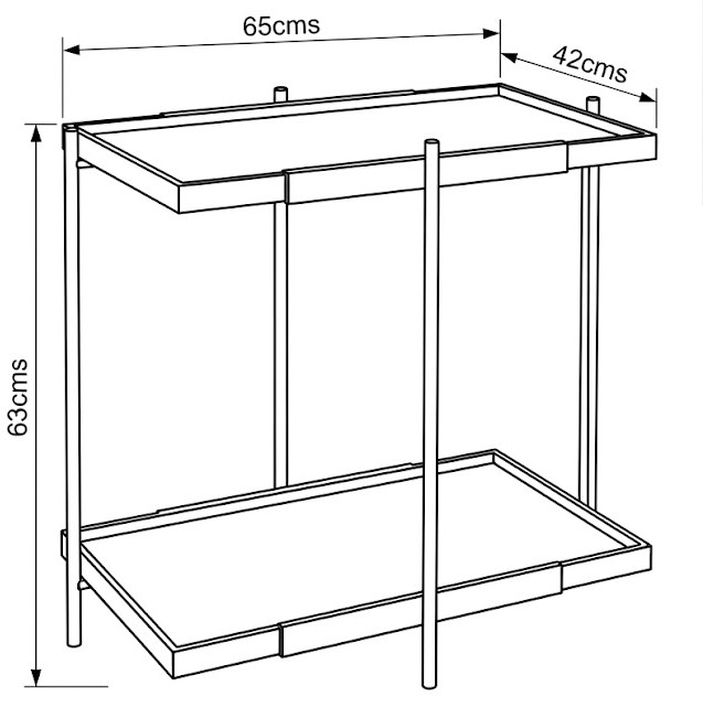 Mesa de apoyo con estructura metálica y estantes con terminacion de laca poliuretanica, pensada para aportar orden y funcionalidad sin perder liviandad visual.